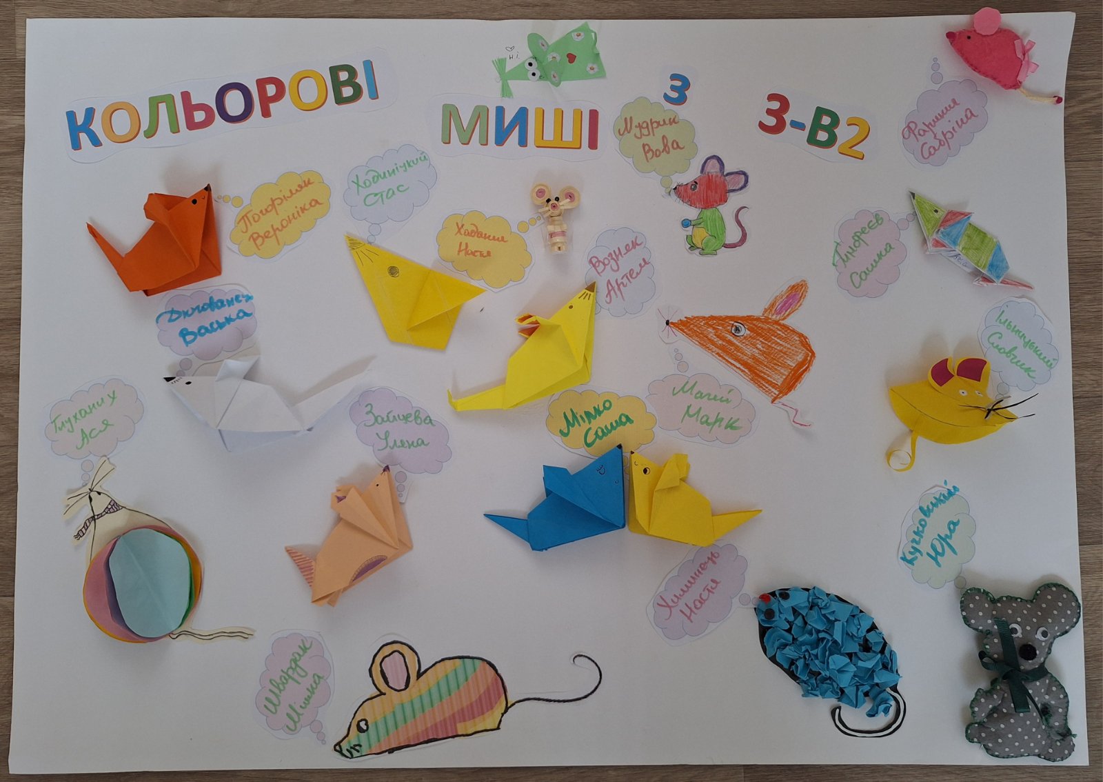 Надихнувшись ідеєю зіткнення неповторності й буденності, на уроці української літератури учні разом зі своєю вчителькою Надією Іванівною створили власних мишенят.